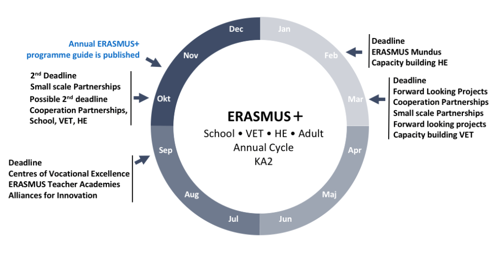 The Learning mobility programme runs every year and roughly follows the annual cycle illustrated below: