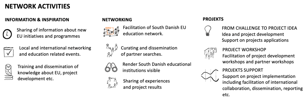 SDEO EDUCATION NETWORK is the South Danish network of vocational and higher education institutions for European collaboration on education and training, facilitated by the South Denmark European Office in Brussels.
